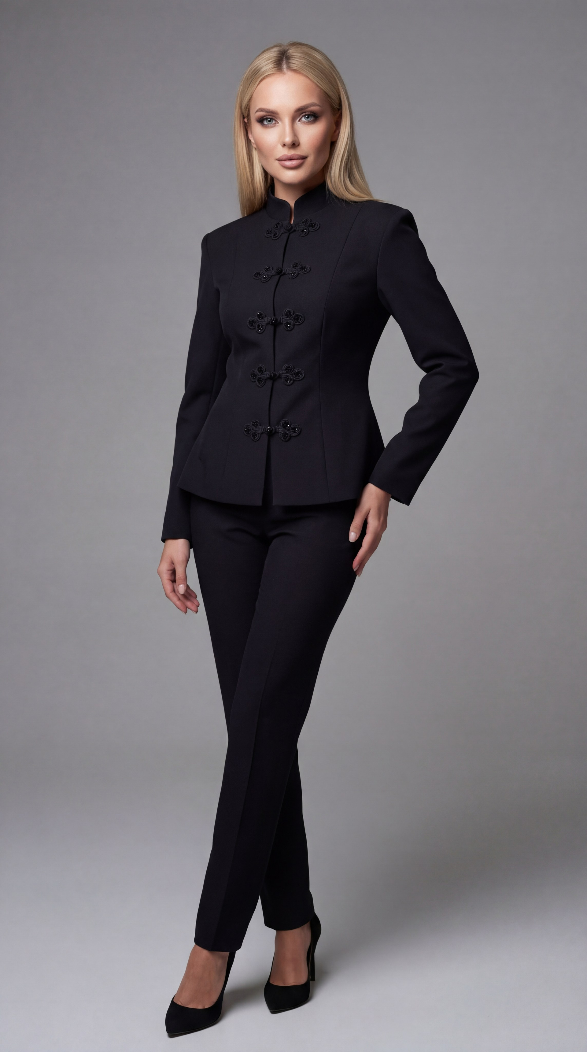Брючный костюм. Цвет - чёрный , в белую полоску. Размер 44 - 46