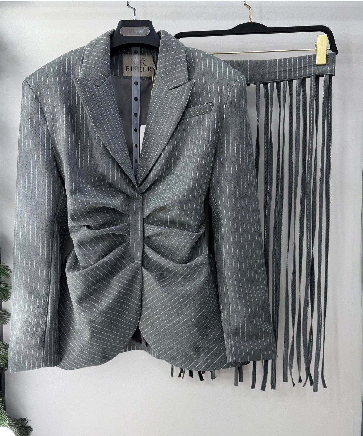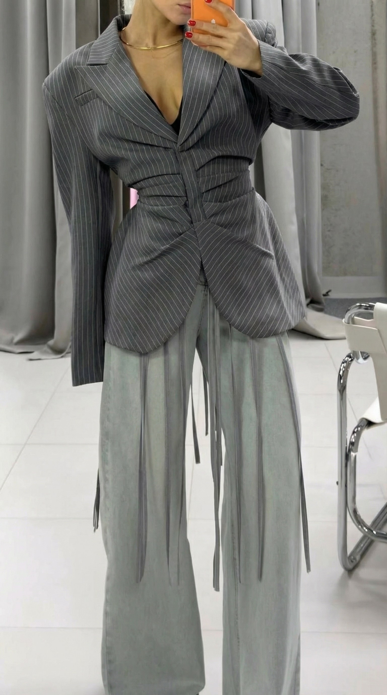 Пиджак оверсайз, удлинённый с завязками, приталенный. Размер S - M