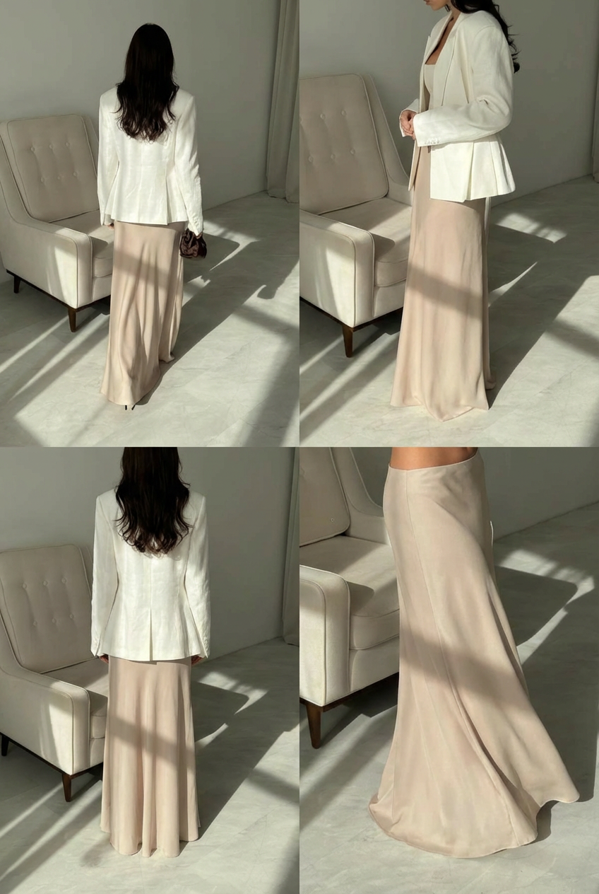 Юбка атласная макси, длина 100 см. Размер 44. Цвет кремовый беж